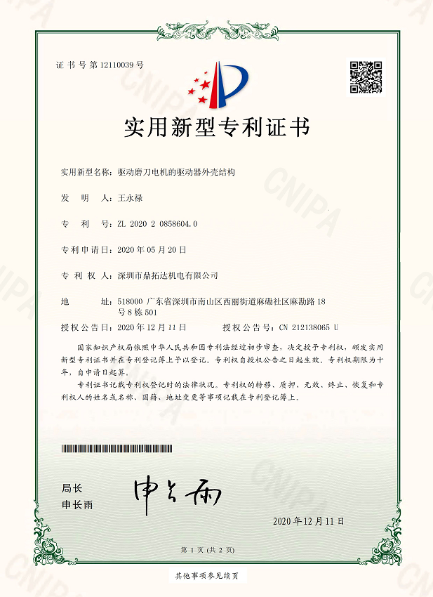 首頁->產品認證->驅動磨刀電機的驅動器外殼結構